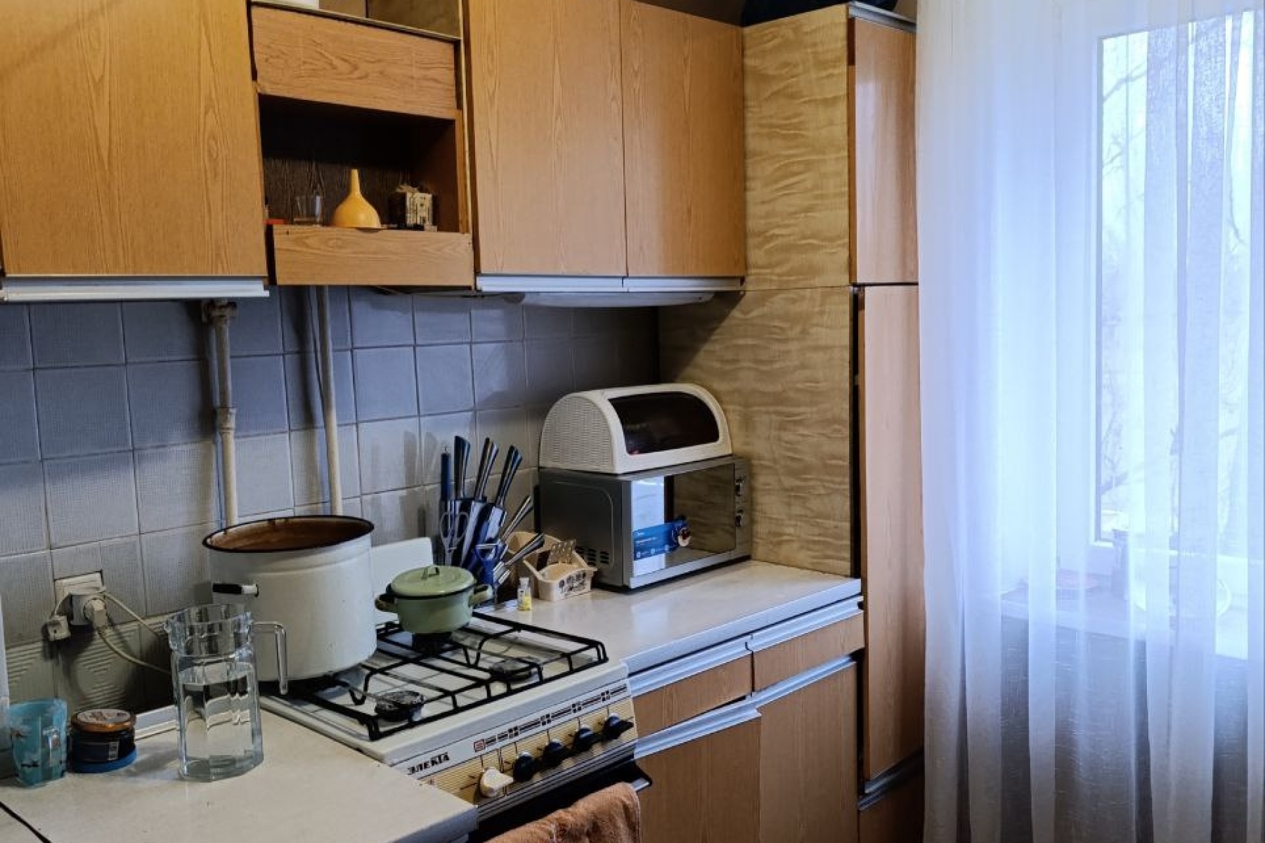 Калининский район ул. Пархоменко. Дом панельный .4/9. 2-комнатная 48 КВ.м. общая площадь 28 КВ.м. жилая 75 кухня. Угловая балкон и лоджия застеклены . Пластиковые окна. Коммуникации старые.ебель останется только в кухне.Т