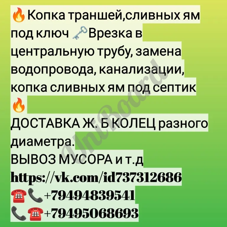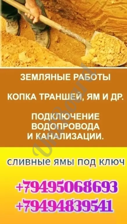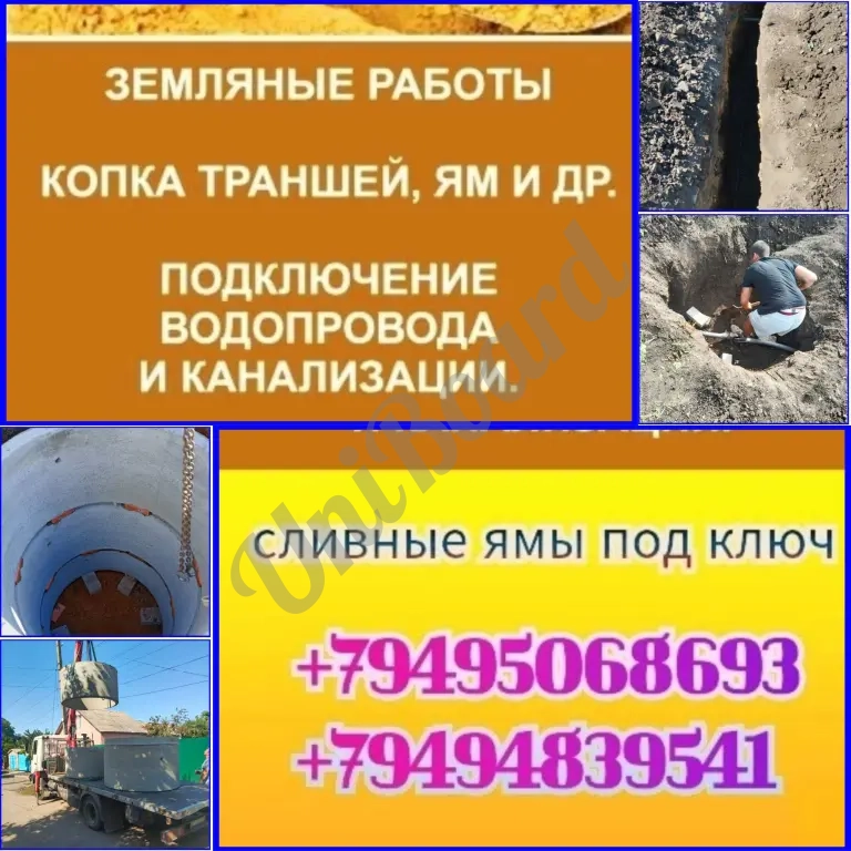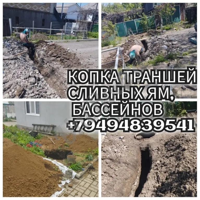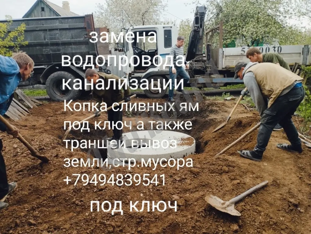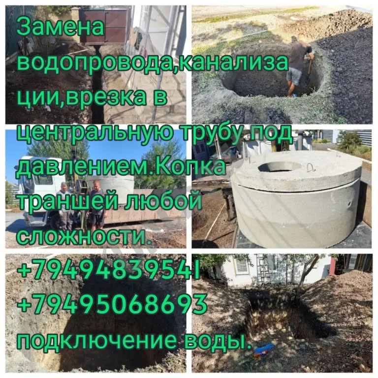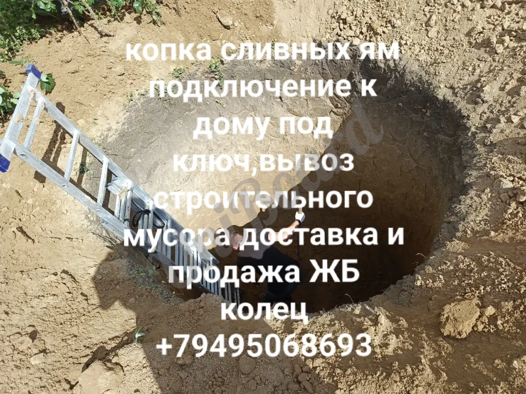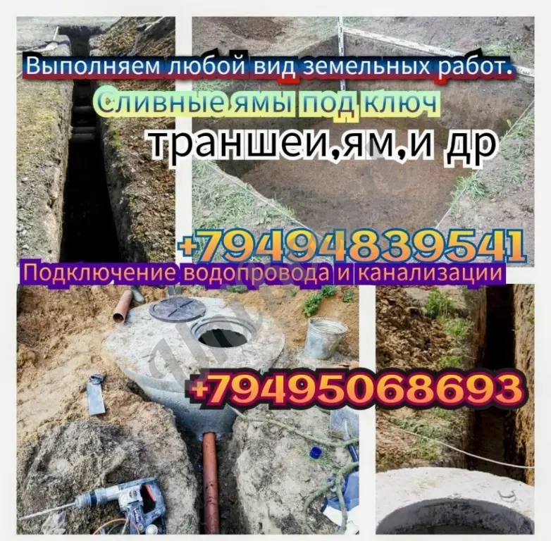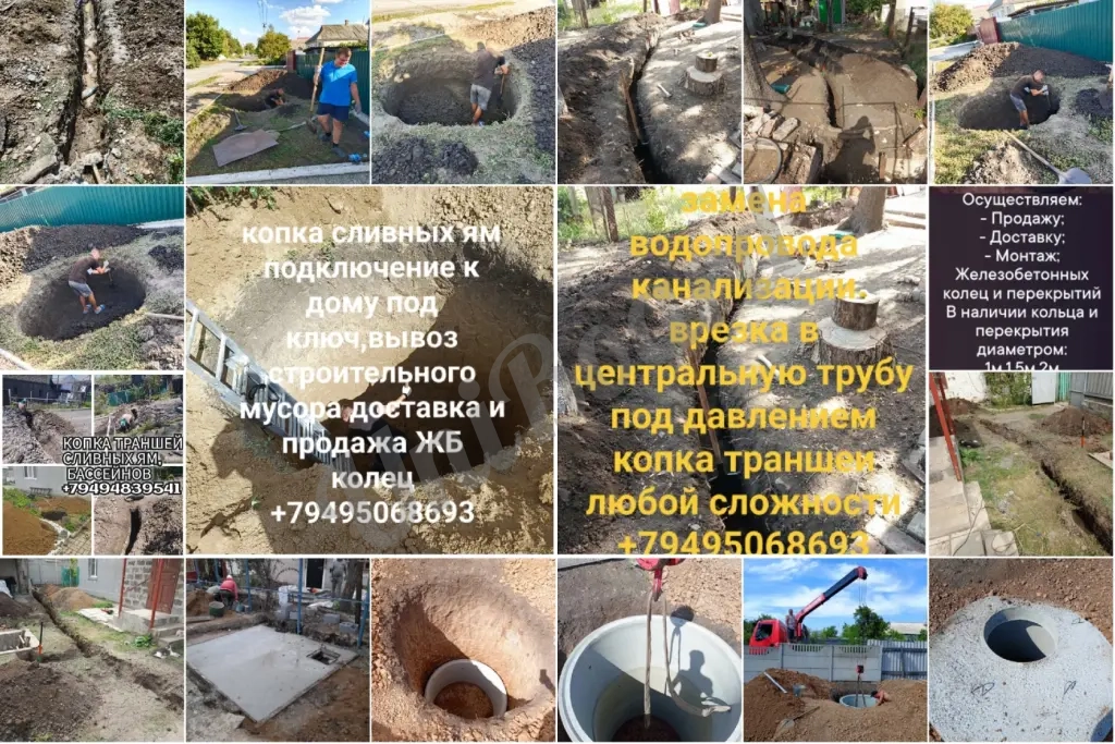 Копка сливных ям септиков траншеи замена водорода и канализации врезка в центральную трубу под давлением, установка жб колец и т.д.